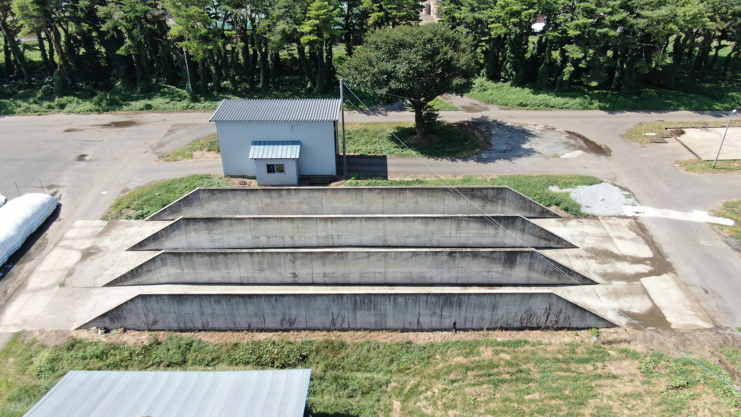 バンカーサイロ(飼料搬入前・横上空から)(独)家畜改良センター提供